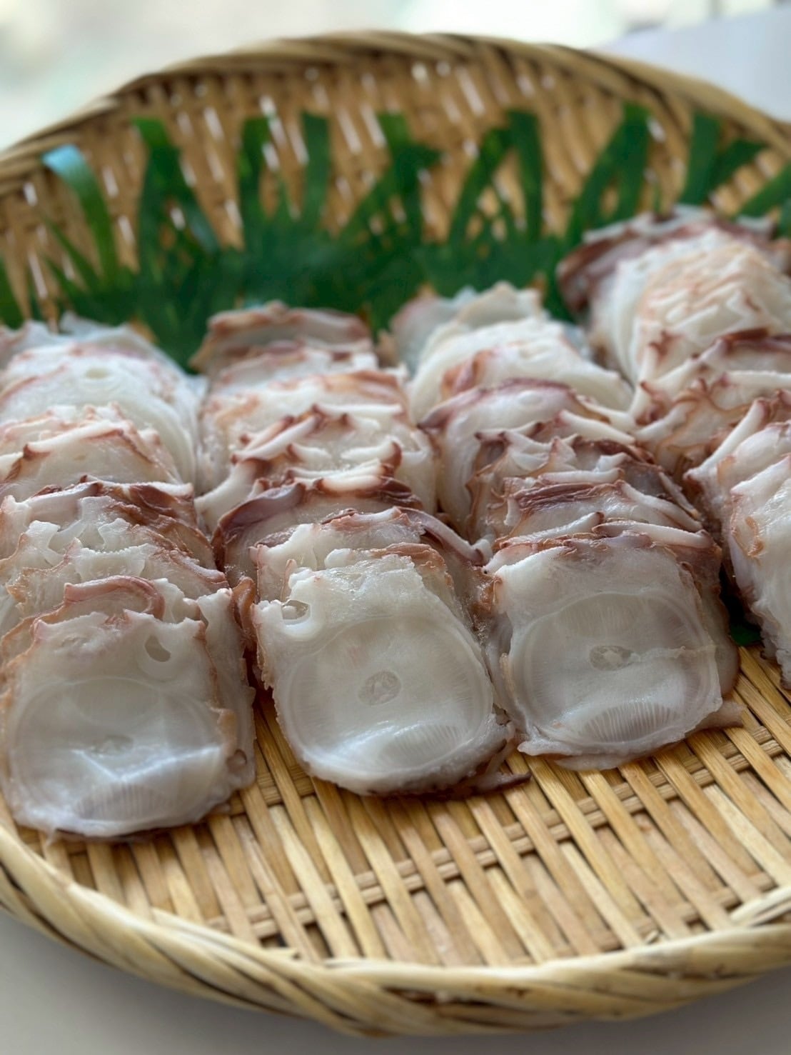 1mmで丸型にスライスしたタコを贅沢に集めました♪